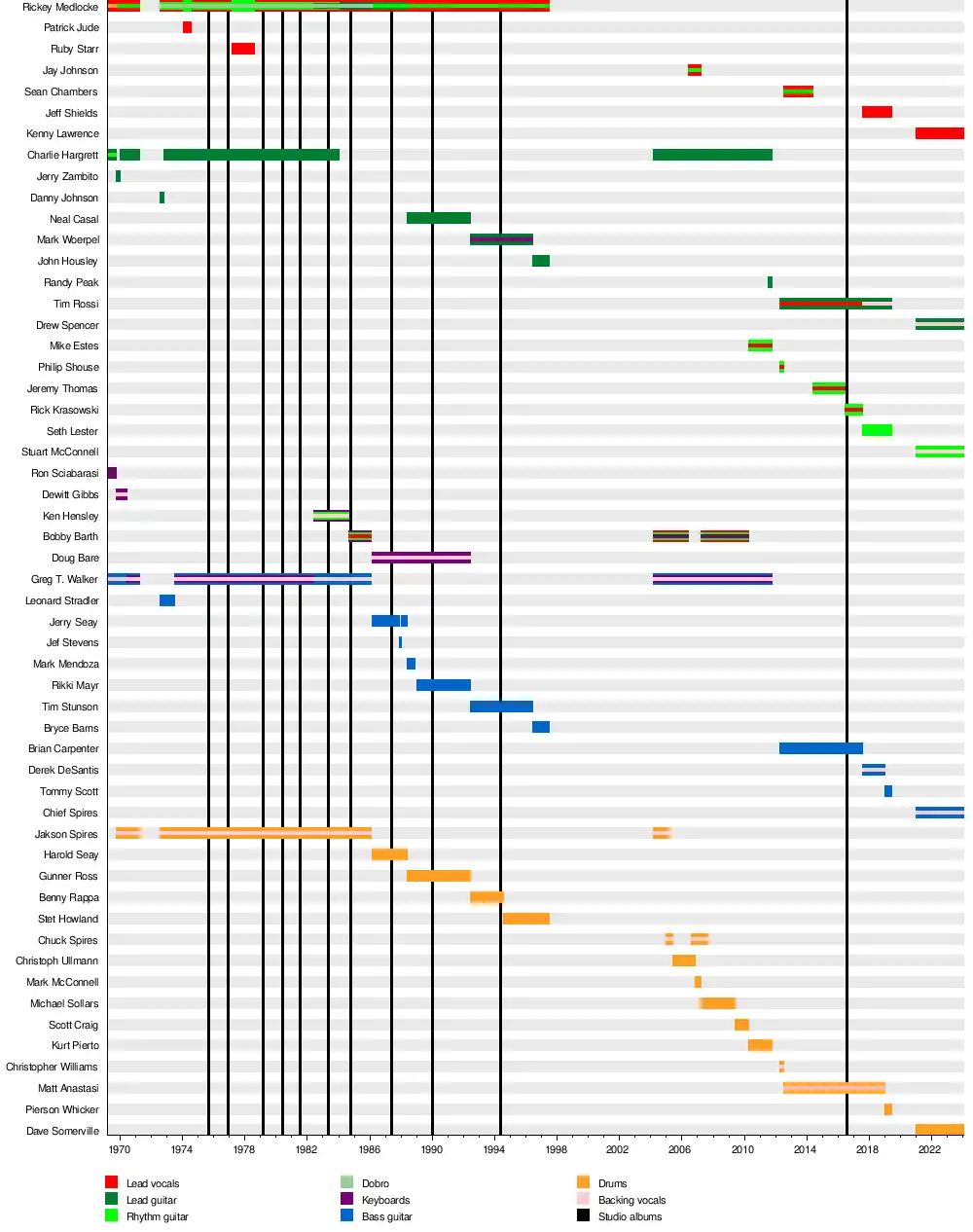 Although there are no founding members of the band in its current lineup, Medlocke joins the band onstage for certain concerts.[9]