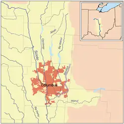 - ↑ U.S. Geological Survey. Southeast Columbus quadrangle, Ohio. 1:24,000. 7.5 Minute Series. Washington D.C.: USGS, 1992.