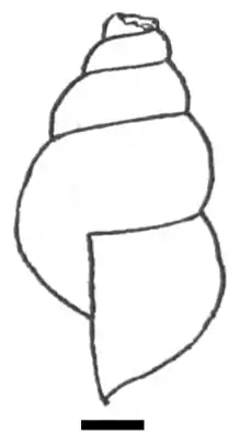 ![]() Drawing of apertural view of a shell. The scale is 1 mm. |