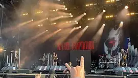 Within Temptation performing at the Download Festival in 2023. Between 2020 and 2023, all stand-alone singles that later were made part of the album were performed live.