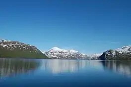 Bleikvatnet is a lake in the municipality of Hemnes in Nordland county, Norway. The lake lies about 5 kilometres (3.1 mi) northeast of the village of Bleikvasslia. The 12.59-square-kilometre (4.86 sq mi) lake is regulated by a dam. The water flows out to the south and then down a 64-metre (210 ft) tall waterfall on the river Bleikvasselva.[1]