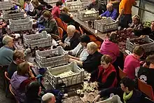The floats are made by twenty different hamlets, each with hundreds of volunteer builders of all ages. Older members of the hamlet are usually responsible for planting and growing the dahlias, while younger ones build the floats in large temporary tents that are built exclusively for the event.