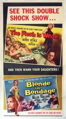 Blonde in Bondage (Swedish: Blondin i fara) is a 1957 Swedish drama crime film directed by Robert Brandt, who also wrote lyrics to the film's two songs. Distributors Corporation of America released the film in the US as a double feature with The Flesh Is Weak (1957). It was shot at the Metronome Studios in Stockholm.