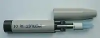 Blood-sampling device with a lancet at the tip.