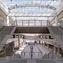 The parking garage includes a large open atrium