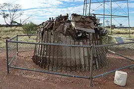A part of the Blue Streak F1 rocket launched on 5 June 1964 from Woomera, Australia, found 50 km SE of Giles in 1980 (c.1000 km) is on display at Giles Weather Station. Another piece was located in 2006, but its exact location has been kept secret by the finders. The titanium structure of a German third stage was, for some time, sited on the edge of a gravel pit in Gloucestershire.