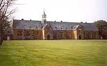 The Old Blundell's School was built to be much larger and grander than any other in the West Country, with room for 150 scholars and accommodation for a master and an usher.[1] The Grade 1 listed building is now in the care of the National Trust and the forecourt is usually open to visitors. One ex-Blundell's boy was the writer R. D. Blackmore, who in the novel Lorna Doone set the stage for a fight between John Ridd and Robin Snell on the Blundell's triangular lawn.[2]