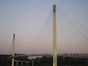 The Bob Kerrey Pedestrian Bridge[3] is a 3,000-foot (910 m) footbridge across the Missouri River between Council Bluffs, Iowa, and Omaha, Nebraska. It opened on September 28, 2008.[2]