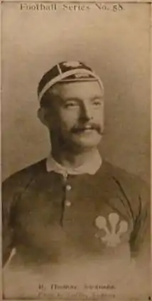 Thomas began his rugby playing career for local clubs across the Swansea area, before joining Morriston.[2] Morriston was well known for providing players to first class club Swansea, and in 1892 Thomas too joined the team. Despite joining Swansea in 1892, it took until 1900 for him to be selected for the Wales national squad, joining the team in the opening match of the 1900 Home Nations Championship, played at Gloucester against England. The Welsh team saw an influx of new players, mainly brought into the back positions, but Thomas was one of two new caps in the forwards, along with Pontymister's William Williams. Wales won the game 13–3, and the Welsh selector's reacted by keeping faith with the Welsh forwards for the next game, apart from the enforced change of Dick Hellings. Played at Swansea's home ground at St. Helens, Thomas was part of the Welsh team to beat Scotland in another convincing win, this time by 12 points to three. The final game of the Championship was played at Belfast against Ireland, and with the Hellings returning the pack was back to the same line up as the first game of the tournament. A single try by Welsh centre George Davies gave Wales the win and their second Triple Crown, and made Thomas a Championship winning player.