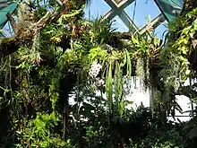 Orchid-covered tree in Boettcher Memorial Tropical Conservatory