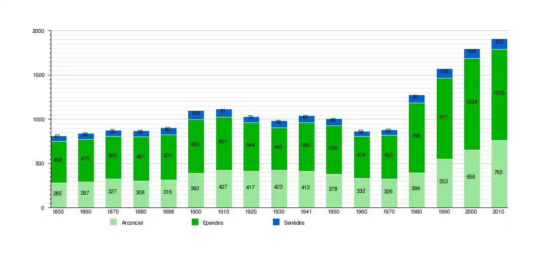 Arconciel is first mentioned in 1082 as castrum Arconciacum. The municipality was formerly known by its German name Ergenzach, however, that name is no longer used.[2]