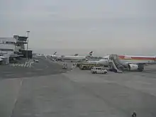 There is one terminal, which underwent an expansion during 2011–2013. It now covers a total surface 36,100m2, of which 5,500m2 are shopping areas. A new baggage handling system was installed and there are now 24 departure gates, all are bus gates since there are not yet any jetways at the airport.[11]