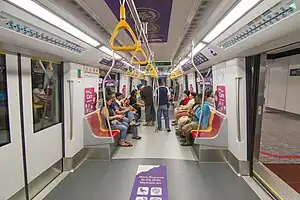 The Bombardier MOVIA C951 is the first generation electric multiple unit rolling stock in operation on the Downtown Line of Singapore's Mass Rapid Transit (MRT) system. The contract was won by Bombardier Transportation[6] (now Alstom) and the rolling stock was built by Changchun Bombardier Railway Vehicles (joint venture of Bombardier Transportation [now Alstom] and CNR/CRRC Changchun).[1][7][8] Initially, the authorities had ordered 73 trains,[8] although LTA had ordered an additional 15 trains[8] and a final 4 more trains under C951A which makes a total of 92 trainsets were manufactured under C951.[2]