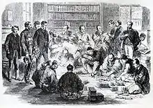An illustration of the negotiation onboard French Navy warship Sémiramis between the Tokugawa shogunate and Britain and France on July 2, 1863. Among the European negotiators is Edward St. John Neale, Gustave Duchesne de Bellecourt, Benjamin Jaurès and Sir Augustus Leopold Kuper.[3]