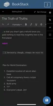 - ↑ Brown, Dan (11 July 2016). "A Year of BookStack". BookStack. Retrieved 9 June 2021.