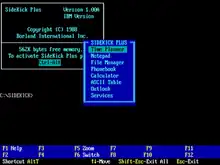 Borland Sidekick was a personal information manager (PIM) launched by American software company Borland in 1984 under Philippe Kahn's leadership. It was an early and popular terminate-and-stay-resident program (TSR) for MS-DOS which enabled computer users to activate the program using a hot key combination (by default: Ctrl-Alt) while working in other programs. Although a text-mode program, Sidekick's window-based interface echoed that of the Apple Macintosh and anticipated the eventual look of Microsoft Windows 2.0. It included a personal calendar, text editor (with WordStar-like command interface), calculator, ASCII chart, address book, and phone dialer. According to the prospectus for Borland's initial public offering of stock to the public, Sidekick sold more than 1 million copies in its first three years.