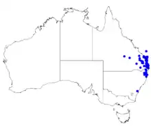 The forest boronia grows in wallum heath and woodland between Bundaberg in Queensland and Grafton in New South Wales.[3][4]