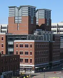 The market occupies most of the ground floor of a mixed use building constructed as part of the Big Dig highway and tunnel project. The building, on a site known as Parcel 7,[8] also includes ventilation towers for the underground highway, a portion of the Haymarket Station of the MBTA Green and Orange lines, the Haymarket Center Garage,[9] and office space occupied by the Massachusetts Registry of Motor Vehicles.[10] The building's architect was Arrowstreet.[11][1]