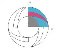A periodic or cyclic boundary condition arises from a different type of symmetry in a problem. If a component has a repeated pattern in flow distribution more than twice, thus violating the mirror image requirements required for symmetric boundary condition. A good example would be swept vane pump (Fig.),[6] where the marked area is repeated four times in r-theta coordinates. The cyclic-symmetric areas should have the same flow variables and distribution and should satisfy that in every Z-slice.[1]
