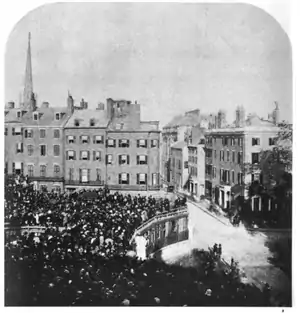 Top of Bowdoin St., at Beacon St., during dedication of Daniel Webster statue, State House, 1859