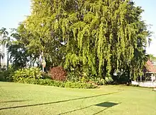 A line of Chinese Celtis (Celtis sinensis) and an overgrowth of trees and shrubs choke the RNA/Bowen Park Boundary. The Cook pine (Araucaria columnaris) and coral tree (Erythrina hendersonii) are possibly remnants from QAS plantings.[1]