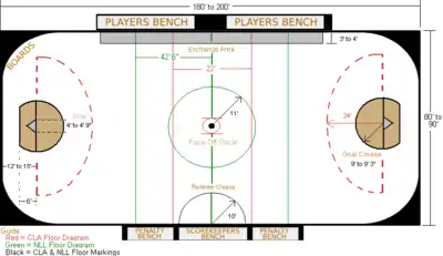 - ↑ "Floor Diagram and Line Markings for CLA Play" (PDF). Canadian Lacrosse Association. Archived from the original (PDF) on March 4, 2009. Retrieved 2008-11-04.
