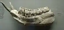 Brachypotherium is an extinct genus of rhinocerotid that lived in Eurasia and Africa during the Miocene.[1] A first upper decidual molar referrable to Brachypotherium brachypus was found during gold mining in New Caledonia during the 19th century, being misidentified as a species of marsupial known as Zygomaturus.[2] However, rhinoceros were never native to New Caledonia, and the tooth was probably used as jewelry by a French convict deported there.[3]