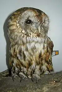 This safety-glass display is behind the entrance door, and set low enough for young children to see some of the mounted birds at eye-level. It contains garden birds, a wren's nest and a tawny owl. This display plays birdsong recordings, which young children can learn quickly. This serves as an introduction to pishing.[16][17]
