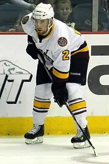 Undrafted out of college, Hunt signed an amateur tryout contract with the American Hockey League's (AHL) Chicago Wolves, where his first head coach was Craig MacTavish.[25] He scored his first professional goal on March 29, 2012, in a game against the Abbotsford Heat in front of 40 friends and family members.[26] He played 14 games for Chicago, registering one goal and five points. He remained with the Wolves for the Calder Cup playoffs, playing in 5 games scoring 1 goal and 5 points as the Wolves lost in the first round to the San Antonio Rampage.[9][27] In the off-season, the Wolves signed Hunt to a standard player contract.[24] In his first full professional season, Hunt was named to the 2013 AHL All-Star Game, replacing the injured Brett Sterling as the Wolves' representative. At the time of the announcement, Hunt was Chicago's leading scorer among defenceman.[28] At the All-Star skills competition, he participated in three events; Puck Control Relay, Hardest Shot, and Breakaway Relay. He finished third in the Hardest Shot competition recording a 99.5 miles per hour (mph) shot.[29] In the game, Hunt scored a first period goal helping the Western Conference to a 7–6 victory.[30] He finished the season with 4 goals and 33 points as the Wolves missed the playoffs.[9][31]