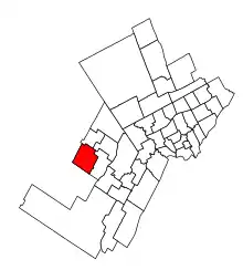The district includes the western part of the city of Brampton excluding the neighbourhood of Madoc.