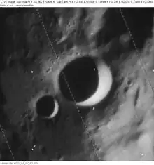 Braude is a lunar impact crater located on the far side of the Moon. The crater is named after radio astronomer Semion Braude.[1] The crater was adopted by the IAU in 2009. The nearest major feature is the Schrödinger crater. Also located nearby is the Wiechert crater, which is located less than 170 kilometers from the southern pole.