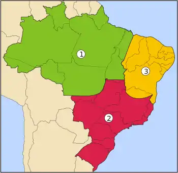 The Brazil socio-geographic division is a slightly different division than the Brazilian Division by Regions. It separates the country into three different and distinctive regions: