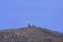 The first lighthouse was built in 1858 by English convicts using pre-made cast iron sheeting rising it at the centre of an octagonal stone keeper's cottage;[2] in 1889 two keeper's cottages were built. This lighthouse was replaced in 1901 by a cylindrical granite tower built on the rear still active and in good condition.