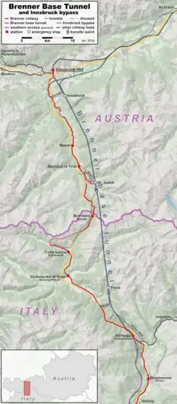 - ↑ "Project Overview". Brenner Base Tunnel. BBT SE. Archived from the original on 22 September 2012. Retrieved 19 February 2013.