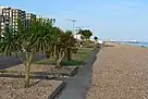 The total distance in a straight line from the western edge of Littlehampton to the eastern edge of Saltdean is between 23 and 24 miles (37 and 39 km). Along the shore or by road, it is slightly further.