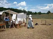 On an 18th-century battlefield, the camp set up by a regiment would have been extremely simplistic in terms of possessions and comforts.[24] Only the very basic necessities would have been taken as everything a regiment needed had to be carried while on the move.[25]