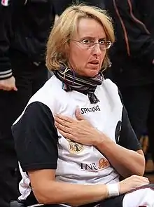 Britt Tuna was born on 4 April 1963.[1] She played wheelchair basketball for RSV Lahn-Dill, and the German national team which won the European Wheelchair Basketball Championship in 1987.[2] At the 1988 Summer Paralympics in Seoul, Tuna was considered to be the strongest wheelchair basketball player in her 1.0-point class. The German team went through the tournament undefeated until the final match, which they lost to the United States, 38–31.[3] Tuna was bitter about the defeat, which she blamed on a tactical error by the German coach.[4] She later conceded, "So habe ihr diese Niederlage noch über Jahre nachgehangen" ("I indulged in this defeat for many years").[4]