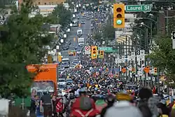 Broadway is a major east–west thoroughfare in the city of Vancouver, British Columbia, Canada. In Vancouver's numbered avenue grid system, it runs in place of a 9th Avenue, between 8th and 10th. The street has six lanes for most of its course. Portions of the street carry the British Columbia Highway 7 designation.[2]