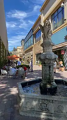 California Pizza Kitchen moved elsewhere in the city in 2016, with tenants of the adjacent stand-alone building moving into the mall's expansion wing that same year.[16] A new stand-alone Apple store and a revitalized pedestrian plaza were then proposed for the land occupied by the two vacant buildings. Apple and the new plaza commenced construction in early 2017, and opened in Summer of 2018.[17] Life Time Fitness, an upscale large-format sports club, began construction on the remainder of the former Macy's Men's footprint in 2021 after a series of delays related to the COVID-19 pandemic, with a planned opening in 2023.[18]