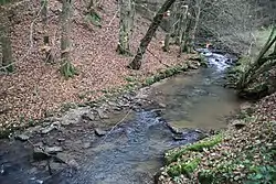 The Brombach springs from several sources west of Rehbach (a district of Michelstadt) and of Langen-Brombach (a district of Brombachtal).[1] In the district Zell im Odenwald of Bad König, it discharges into the Mümling.[2]