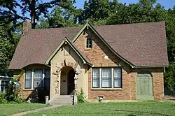 The Brooks House is a historic house at 704 East Market Street in Searcy, Arkansas. It is a 1+1⁄2-story wood-frame structure, with a side-gable roof, and a slightly off-center projecting gabled section, from which an entrance vestibule projects further at its left edge. To the left of the projecting section is a segmented-arch dormer over a group of three sash windows. Built about 1935, it is a fine local example of a modest English Revival house, echoing more elaborate and larger-scale homes of the style in wealthier communities.[2]