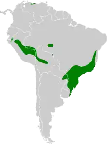 The brown tinamou is located in northern Venezuela, Colombia, Ecuador, Peru, northern and southern Brazil, extreme northeastern Argentina, eastern Bolivia, and eastern Paraguay.[5] They may also be in Uruguay.[1]