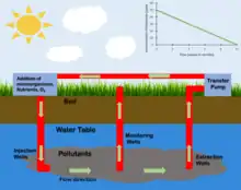 Innovative remediation techniques used at distressed brownfields in recent years include in situ thermal remediation, bioremediation and in situ oxidation. Often, these strategies are used in conjunction with each other or with other remedial strategies such as soil vapor extraction. In this process, vapor from the soil phase is extracted from soils and treated, which has the effect of removing contaminants from the soils and groundwater beneath a site. Binders can be added to contaminated soil to prevent chemical leaching.[40] Some brownfields with heavy metal contamination have even been cleaned up through an innovative approach called phytoremediation, which uses deep-rooted plants to soak up metals in soils into the plant structure as the plant grows. After they reach maturity, the plants – which now contain the heavy metal contaminants in their tissues – are removed and disposed of as hazardous waste.