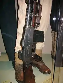 After the Polish-Bolshevik War, in 1923 a competition was opened for a new, standard light machine gun for the Polish army that was to replace all previously used types of LMG. The competition ended without a winner and the following year the Polish Ministry of War purchased 12 specimens of the M1918 Browning Automatic Rifle, Lewis gun ("Lewis wz. 1923") and Hotchkiss M1909 Benét–Mercié each. Testing proved the superiority of the American construction, and during the 1925 competition, a Belgian FN-made Browning was chosen. Although extensive tests were continued, the Polish army ordered a series of Belgian-made BAR machine guns, modified to better suit the Polish needs. The modifications included changing the round from .30-06 Springfield to standard Polish 7.92×57mm Mauser),[1] the construction of a bipod and mounting, and the iron sights (peephole changed to v-notch type). The barrel was lengthened for greater accuracy and a pistol grip was added for easier aiming. Apart from the 10,000 pieces ordered from Fabrique Nationale, Poland also bought a license to producet the weapon domestically.[2] The first wz.28 LMGs were officially commissioned in 1927 and were officially named 7,92 mm rkm Browning wz. 1928, which is Polish for "7.92 mm hand-held machine gun of Browning mark 1928".