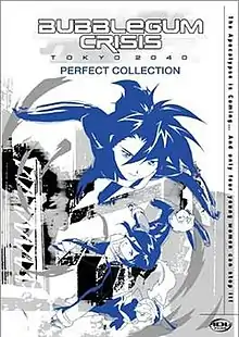Bubblegum Crisis Tokyo 2040 (バブルガムクライシス TOKYO 2040, Baburugamu Kuraishisu TOKYO 2040) is a 1998 cyberpunk anime television series produced by AIC. It is a reboot of the 1987 OVA series Bubblegum Crisis, which focuses on the Knight Sabers, a rogue vigilante group made up of four women who use powered suits to fight rogue Boomer robots made by the megacorporation Genom.
