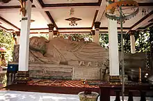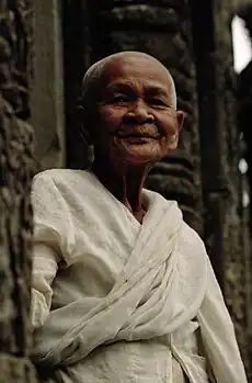 The Khmer Rouge policies towards Buddhism—which included the forced disrobing of monks, the destruction of monasteries, and, ultimately, the execution of uncooperative monks—effectively destroyed Cambodia's Buddhist institutions.[18] Monks who did not flee and avoided execution lived among the laity, sometimes secretly performing Buddhist rituals for the sick or afflicted.[18]