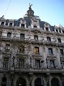 The outmoded headquarters of what was then Argentina's second-largest newspaper, La Prensa, led its influential proprietor in 1894, José Clemente Paz, to purchase a 1300 m² (14,000 ft²) lot on the newly opened Avenida de Mayo, and he commissioned local architects Carlos Agote and Alberto Gainza to design a new headquarters at the site. Agote and Gainza, both graduates of the École Centrale des Arts et Manufactures, drew from their training in Paris to create a Beaux-Arts design, beginning with a façade inspired by French architect Charles Garnier.