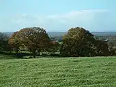 The civil parish has a total area of 2,981 acres (1,206 ha).[11] The terrain is gently undulating, with a high point of 145 metres at SJ706414 near the Shropshire border, south of College Fields. The area is predominantly rural, with the major land use being agricultural.[12][13] Cheese remains a product of the parish.[6] Several small areas of woodland are located within the civil parish, including Brick-kiln Wood, Brook Plantation, Fox Covert, Long Wood and The Ox Leasow. Birchall Brook forms part of the north-eastern parish boundary; several unnamed brooks run through the parish and there are many scattered small meres and ponds.[12][13]