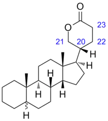 • C[C@]12CC[C@H]3[C@H]([C@H]1CC[C@@H]2[C@H]4CCC(=O)OC4)CCC5[C@@]3(CCCC5)C