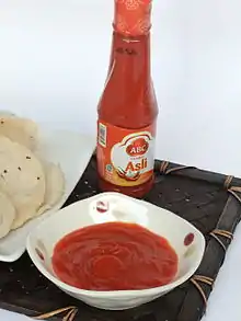 - Saus cabai or sambal botol (bottled sambal or hot chili sauce)